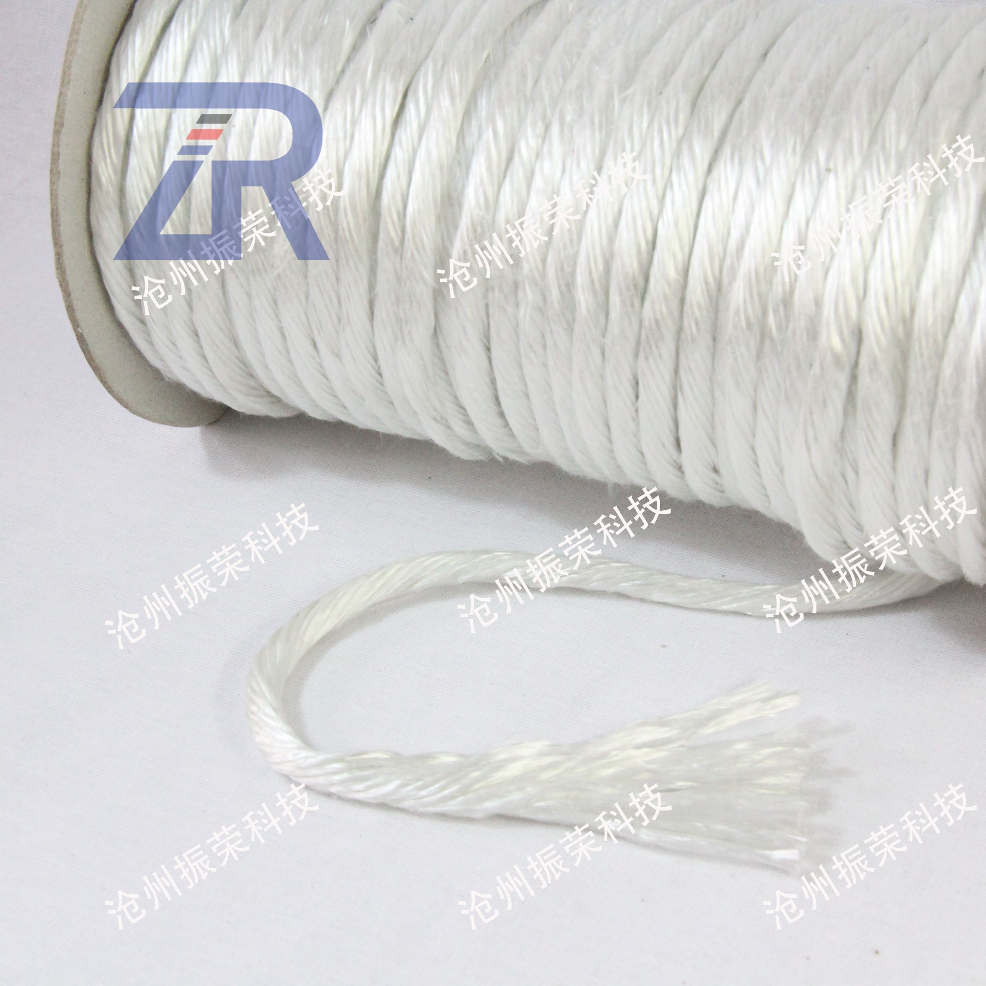 滄州振榮科技生產(chǎn)的玻璃纖維扭繩以高強無堿玻璃纖維為原料,經(jīng)紡紗、織造而成。其連續(xù)使用溫度達650°C。短時間使用溫度也可達550°C。具有良好的抗酸堿腐蝕性與抗鋁、鋅等熔融金屬侵蝕能力。